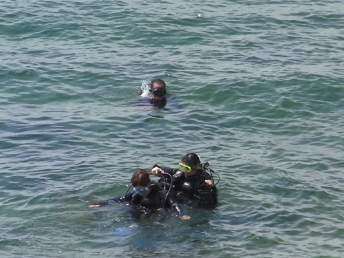 エア切れの対処方法や水中での器材脱着を行っていきます。
