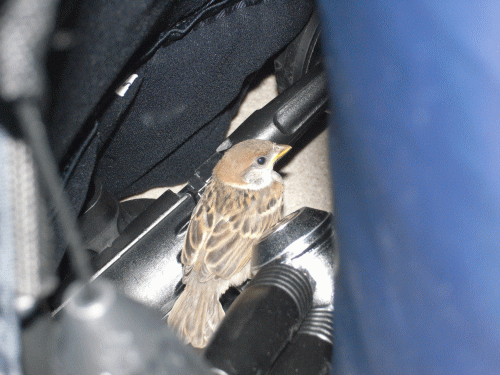 器材の隙間に隠れたり・・飛んでは壁にぶつかったり・・・