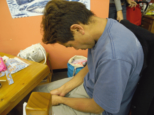 K子さんの息子さんも来てくれて、フィンのカーテンをくぐり、
