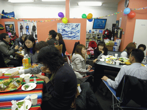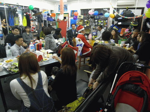 メリークリスマス!のみんなの掛け声とともにケーキを食