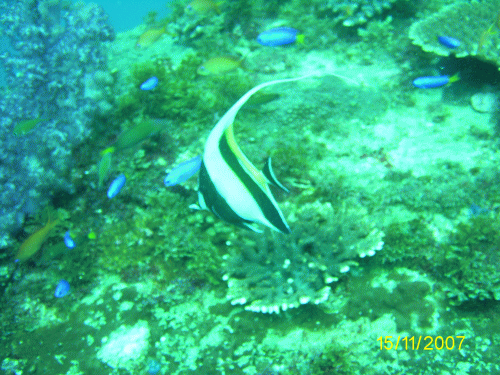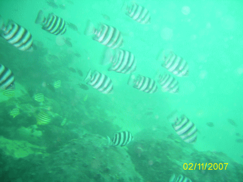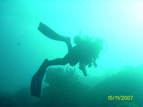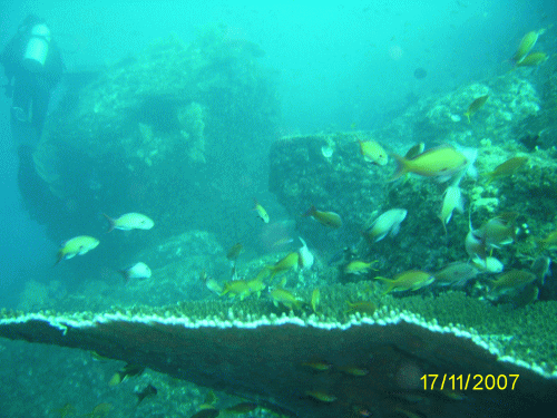 あいにく、風が強く水中は少し濁っていましたが
