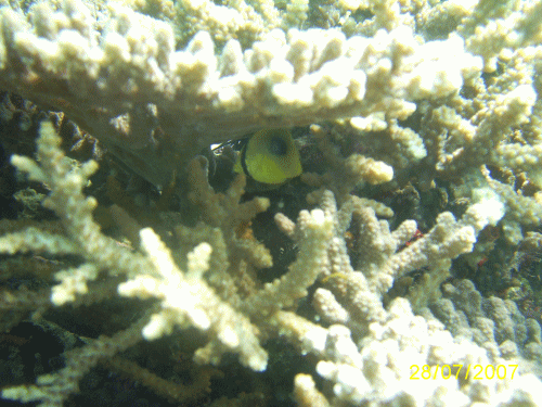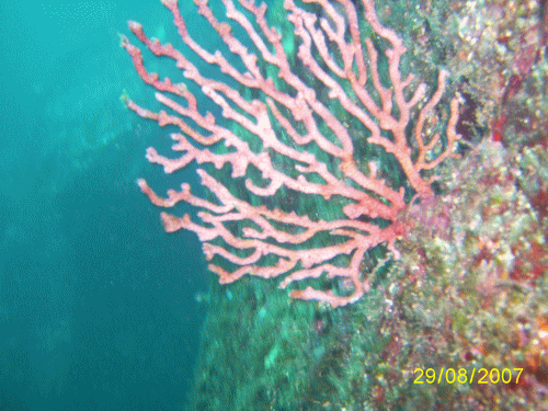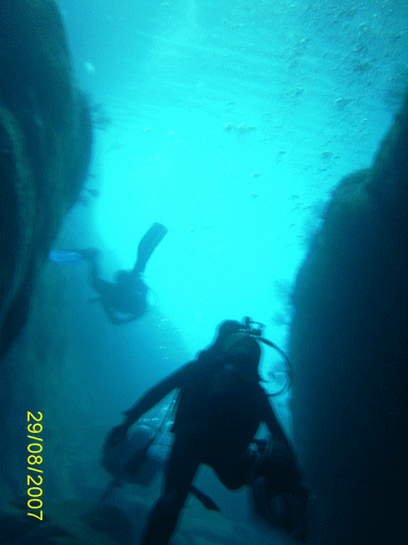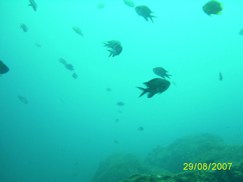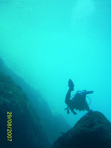 水深20m辺りで、下に引っ張られる弱い流れを感じて